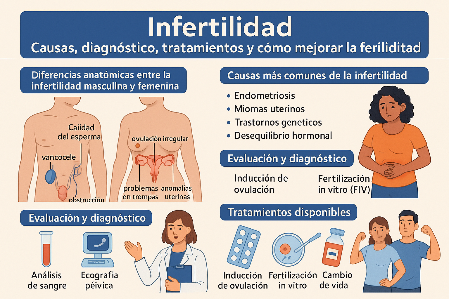 La infertilidad es la incapacidad de lograr un embarazo después de al menos un año de relaciones sexuales sin protección. Este tiempo se reduce a seis meses en mujeres mayores de 35 años. Es una condición común que afecta aproximadamente al 15% de las parejas en edad reproductiva.